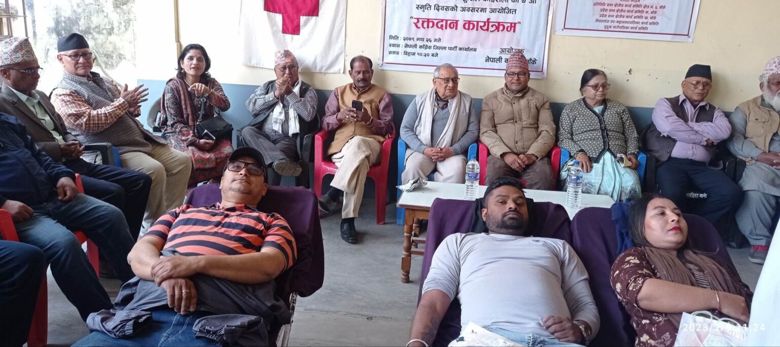 २६ माघ २०७९ नेपालगञ्ज । नेपाली कांग्रेस बाँकेले आयोजना गरेको रक्तदान कार्यक्रममा ६५ जनाले रगत दिएका छन् । संविधान पिता, पूर्व प्रधानमन्त्री एवम् नेपाली काँग्रेसका पूर्व पार्टी सभापति स्वर्गीय सुशिल कोइरालाको सातौं स्मृति दिवसको अवसरमा नेपाली काँग्रेस बाँकेले बिहीवार नेपालगञ्जस्थित पार्टी कार्यालयमा रक्तदान कार्यक्रमको आयोजना गरेको हो ।