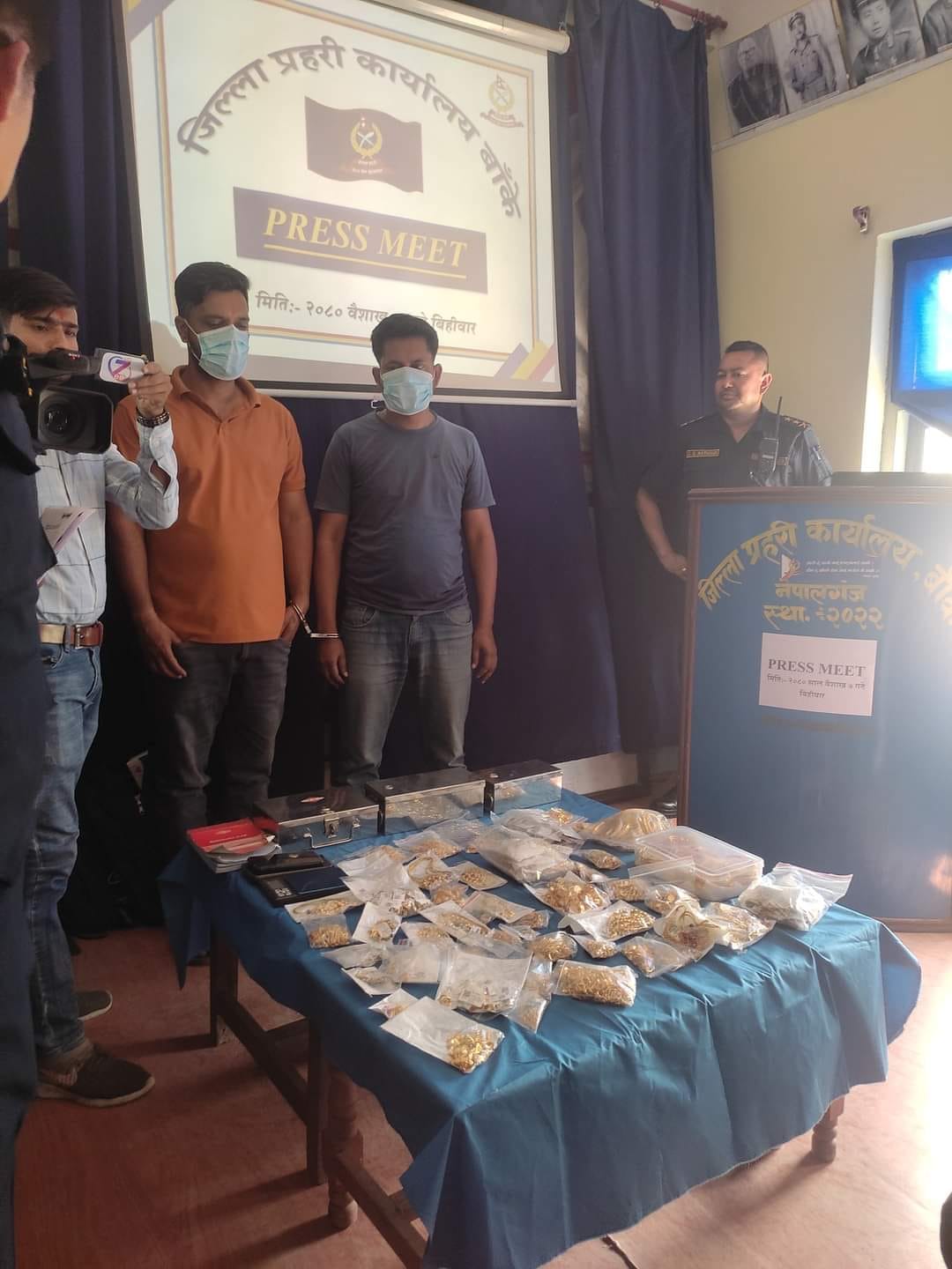 ०७ बैशाख २०८० नेपालगंज । नेपालगजकाे न्युरोडमा अवैध सुनको कारोबार गरेको भन्ने विशेष सूचनाको आधारमा बाँके प्रहरी कार्यालयबाट खटिएको प्रहरी टोलीले उक्त स्थानबाट २ जनालाई पक्राउ गरेको छ । उनीहरुकाे साथबाट गरगहनाह र ४ किलो ९२७.२१८ ग्राम सुन १ थान डिजिटल तराजु, स्टमेट बिलहरु एनआईसी बैंकमा ७,३३,४०० जम्मा भएकाे भाैचर र ३५००० हजार नगद समेत बरामद गरिएकाे प्रहरीले जनाएको छ । प्रहरीका अनुसार उनीहरु जिल्ला मोरङ विराटनगर महानगरपालिका वडा नं.९ बस्ने वर्ष ४२ को रमेश सोनी र सोही ठाउँमा बस्ने वर्ष ३६ को प्रकाश ठाकुरलाई पक्राउ गरी आवश्यक अनुसन्धान भैरहेकाे प्रहरी गरिरहेको छ ।