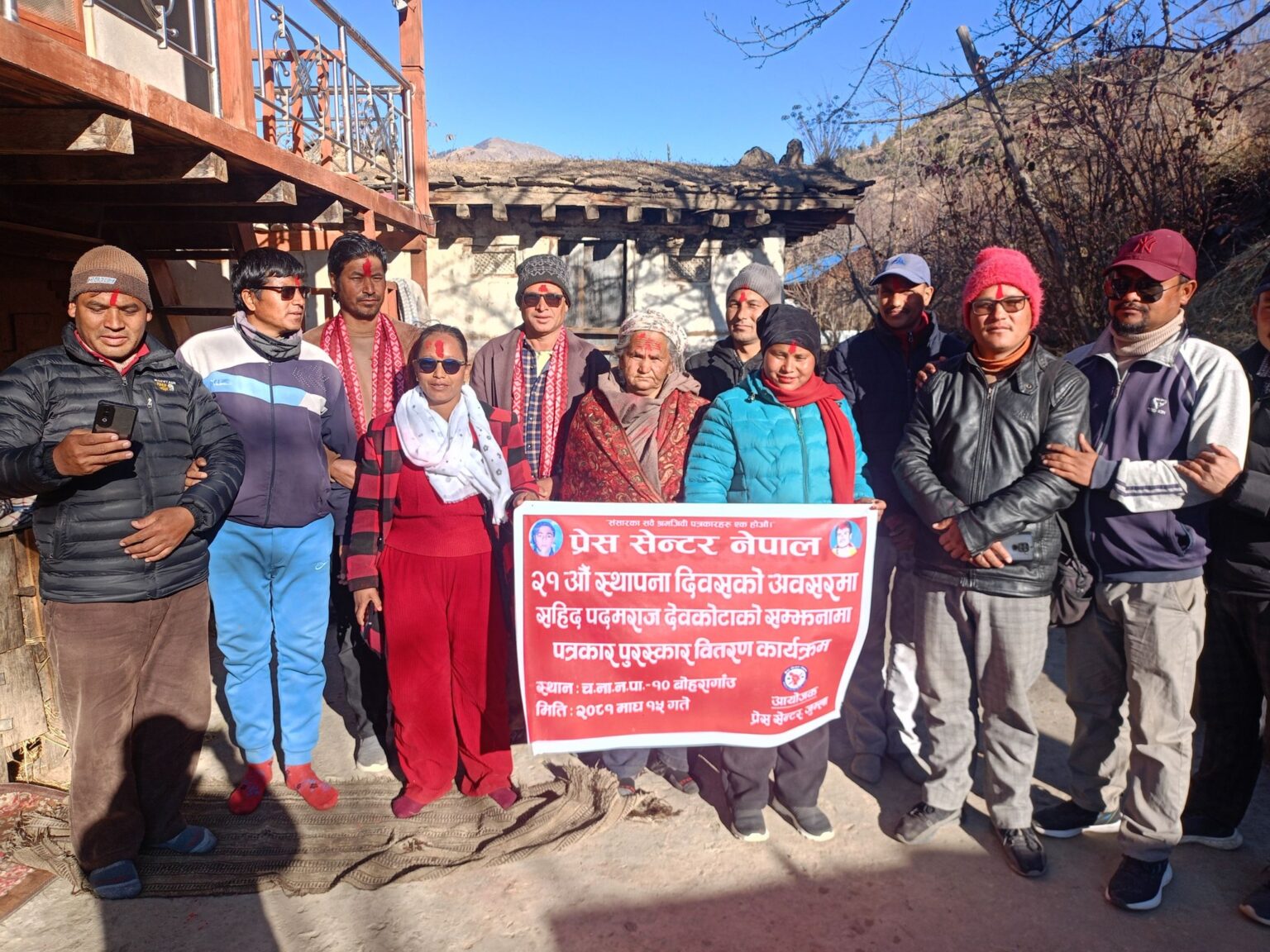 २१ औं स्थापना दिवसको अवसरमा पदमराज देवकोटा स्मृति पत्रकारिता पुरस्कारबाट कान्तिपुरकर्मी पत्रकार धनबहादुर वुढा (डिवि)लाई पुरस्कृत गरि सम्मान गरिएकाे थियो । यसैगरी कार्यक्रममा नेकपा (माओवादी केन्द्र) जुम्लाका जिल्ला संयोजक नवराज न्यौपानले प्रमाणपत्र र नगद राशी रु पाँच हजारले दिनुभयाे । सहिद देवकोटाका आमा विष्णुमाया देवकोटालाई पछ्यौरा ओढायरले सम्मान समेत गरिएको अध्यक्ष शाही बताइन ।