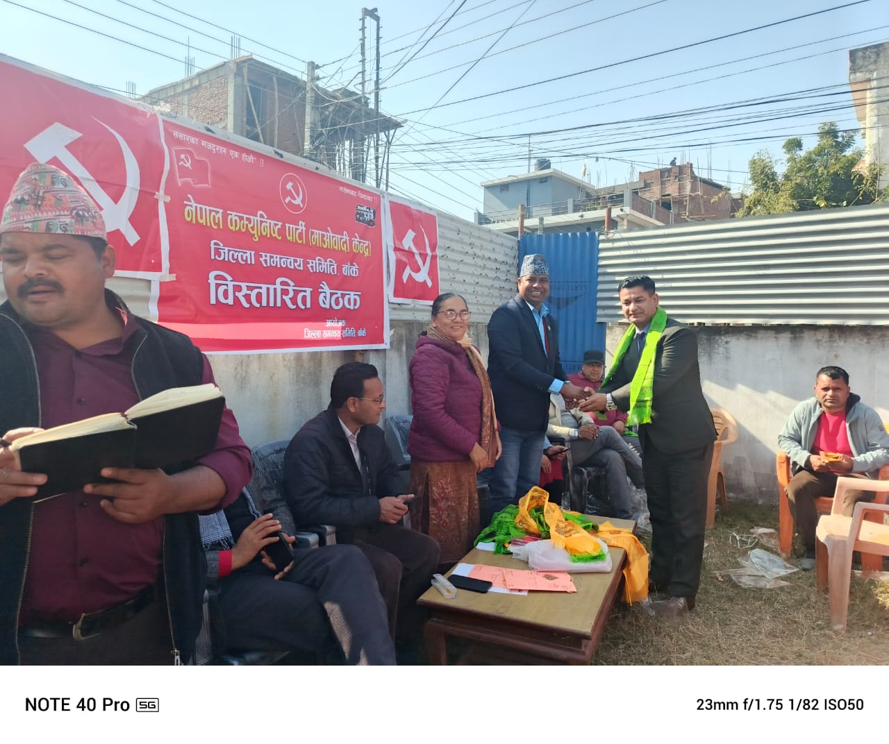 बैठकमा नेकपा (माओवादी केन्द्र) स्थायी समिति सदस्य तथा बाँके जिल्ला इन्चार्ज पुर्णा कुमारी सुवेदी, स्थायी समिति सदस्य महेश्वरजंग गहतराज, केन्द्रिय सदस्य आइपी खरेल, नरेन्द्र न्यौपाने, लुम्बिनी प्रदेश सह-सचिव अकल बहादुर बम, सदस्य गेहराज शर्मा ‘नबिन’ लगाएतका नेताहरुको उपस्थिति रहेको थियो ।